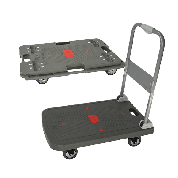 Available in multiple load capacities ranging from 200kg to 400kg (approximately 440 to 880 lbs), our carts can be selected to suit your specific transport needs. Each model features a handle that folds down 90 degrees, allowing for compact storage when not in use. The platform deck is made of impact-resistant High-Performance Polypropylene PP, ensuring strength without adding unnecessary weight. Stainless steel handles and casters are also available as optional upgrades for environments requiring enhanced corrosion resistance or durability.